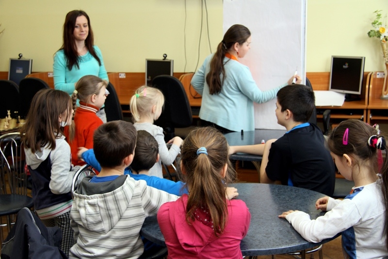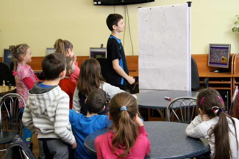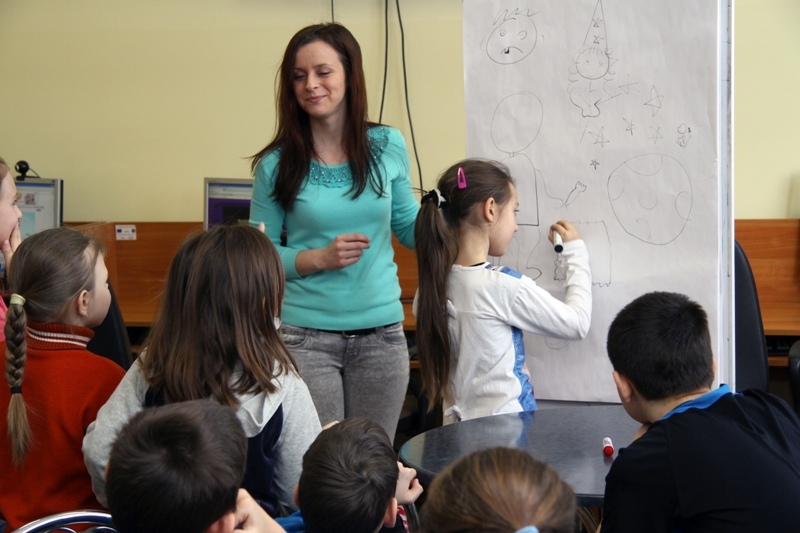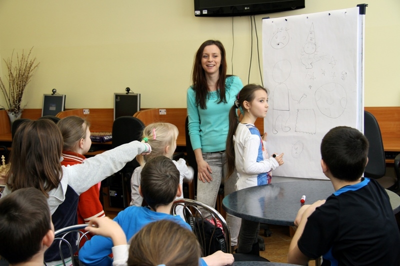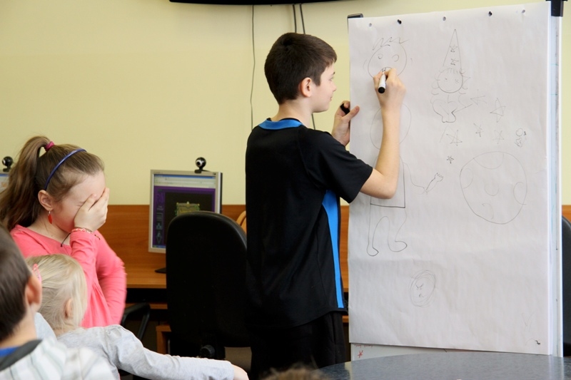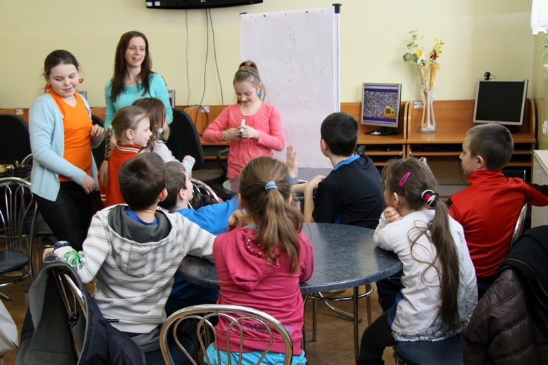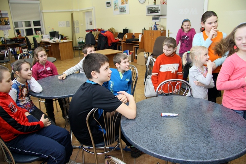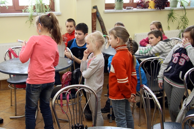 W drugiej części zajęć dzieci chętnie wzięły udział w grze "Kalambury". Podzieleni na dwie grupy uczestnicy rywalizowali ze sobą w zdobywaniu punktów i odgadywaniu haseł.